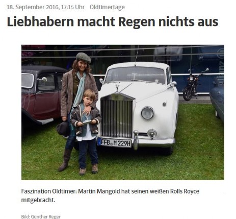 Der Rolls Royce Silver Cloud zog auf den Oldtimertagen Fürstenfeldbruck 2016 nicht nur die Augen der Besucher auf sich, sonder auch die Aufmerksamkeit der Journalisten. Lesen Sie hier das Interview mit Martin Mangold.